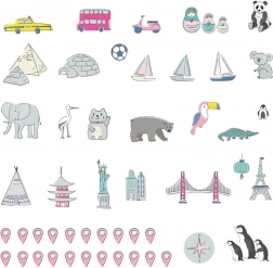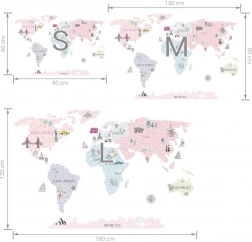 A térkép minden része különállóan van kivágva, így egyszerű megtartani a helyes távolságokat a kontinensek között, és a kompozíció a térhez igazítható. A matrica speciális matt laminátummal védett, amely növeli a karcállóságot, és megkönnyíti az áthelyezést és ragasztást – a fólia erősebb, jobban tapad a falon.