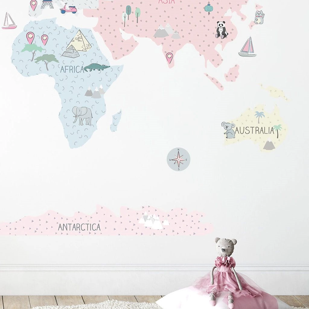 Fedezd fel a játékos tanulás varázsát a gyönyörű világtérkép L rózsaszín pasztell árnyalatokban falmatricával. Ez a skandináv stílusú dekoráció életre kelti bármely gyerekszobát, oktatási elemeket (kontinensek, óceánok, égtájak, nevezetességek) hoz, és a matt laminátumnak köszönhetően karcálló és könnyen felhelyezhető. Minden elem külön van kivágva a könnyű alkalmazás érdekében, még nagyobb felületeken is.