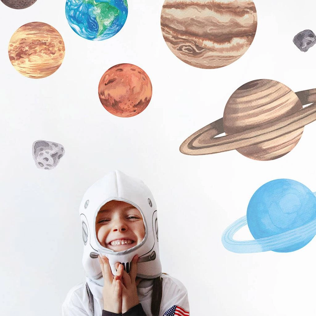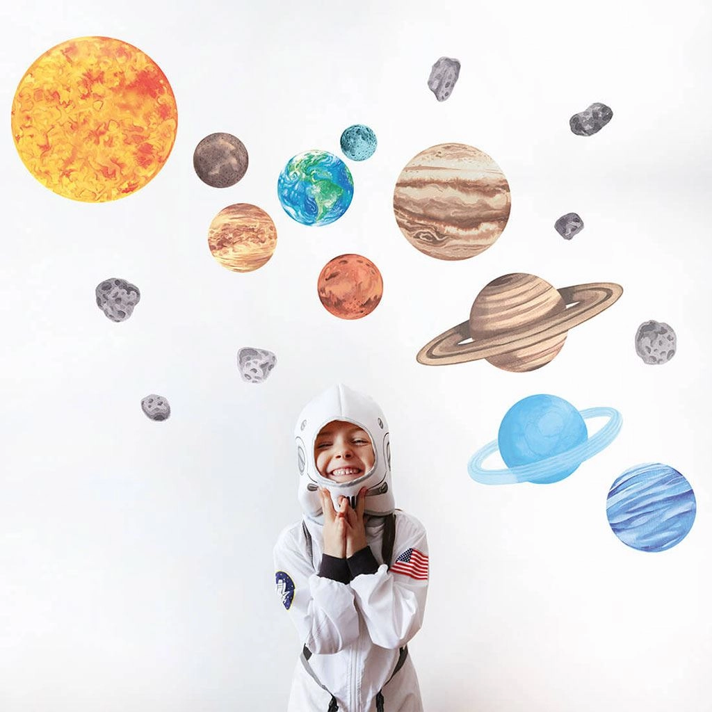 Változtasd a falat az univerzum interaktív térképévé. A készlet tartalmazza mind a 8 bolygót – Merkúr, Vénusz, Föld, Mars, Jupiter, Szaturnusz, Uránusz és Neptunusz – kiegészítve a Nappal, Holddal és aszteroidákkal. A matricák matt laminátummal készülnek, amely védi a felületet és megkönnyíti a felhelyezést, mivel a fólia erősebb és könnyebben kezelhető.
