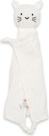 A New Baby muszlin alvókendő cica motívummal biztonságérzetet nyújt a babának, és segít nyugodtan elaludni. 100% organikus pamutból készült, puha töltettel, minimalista dizájnnal és kellemes, minden gyerekszobába illő fehér színnel.