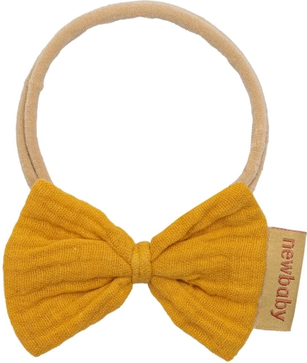Stílusos musszlin fejpánt babáknak és gyerekeknek, New Baby márka, mustárszínben, 100% organikus pamutból készítve. Puha, légáteresztő és kíméletes az érzékeny bőrhöz, meleg napokra ideális. Remekül harmonizál más musszlin termékekkel, és gyönyörű ajándékszettet alkot. A New Baby termékek tanúsítottak és megfelelnek az európai szabványoknak.