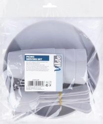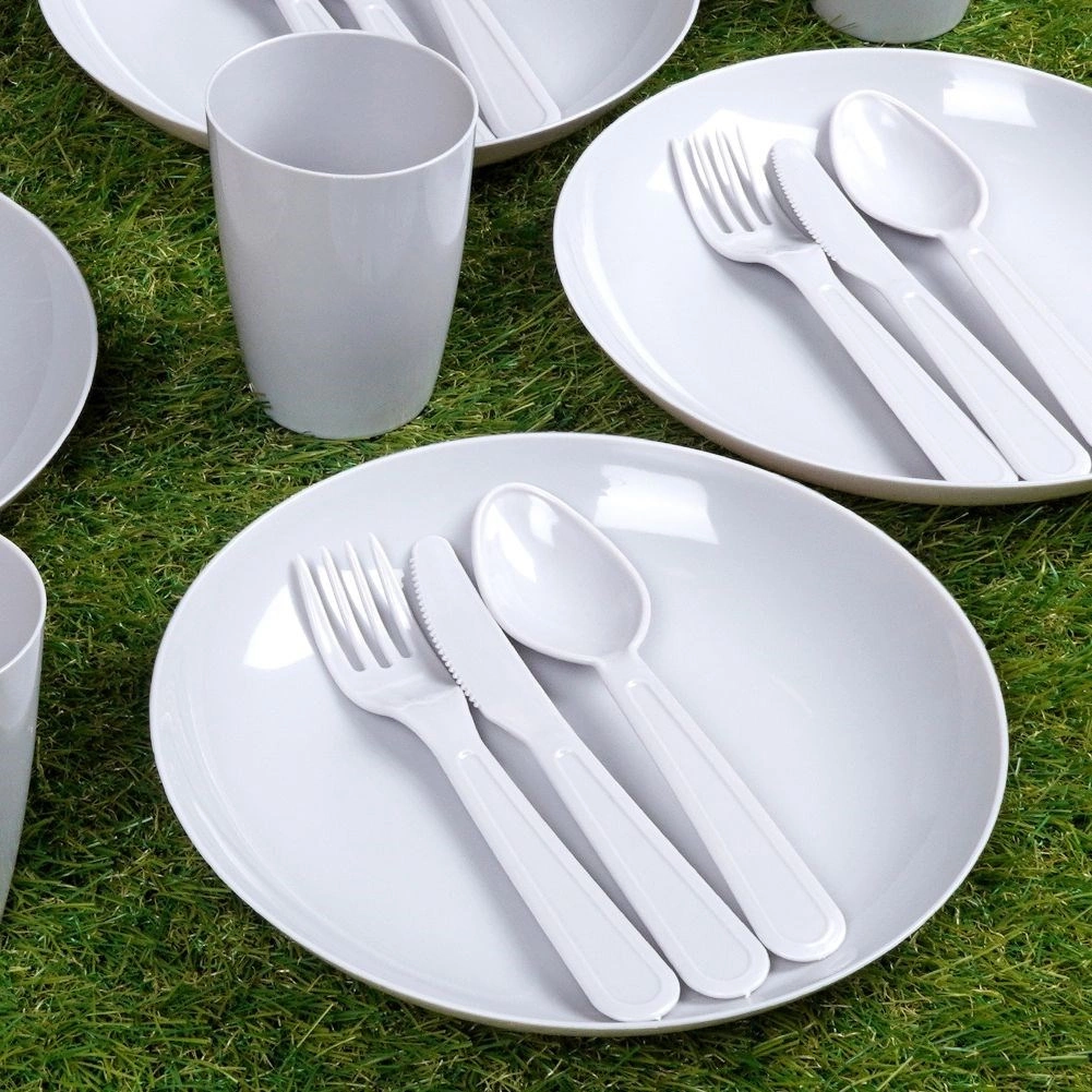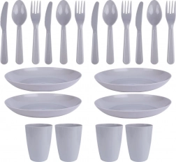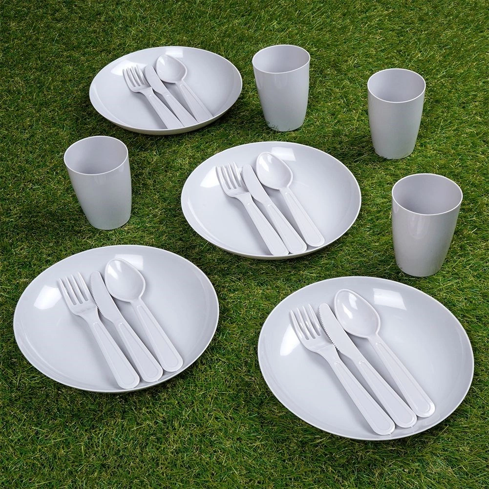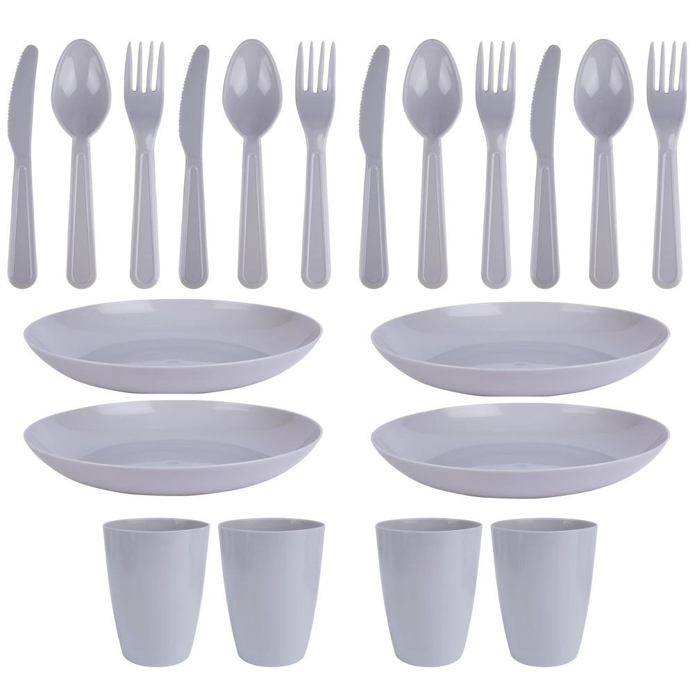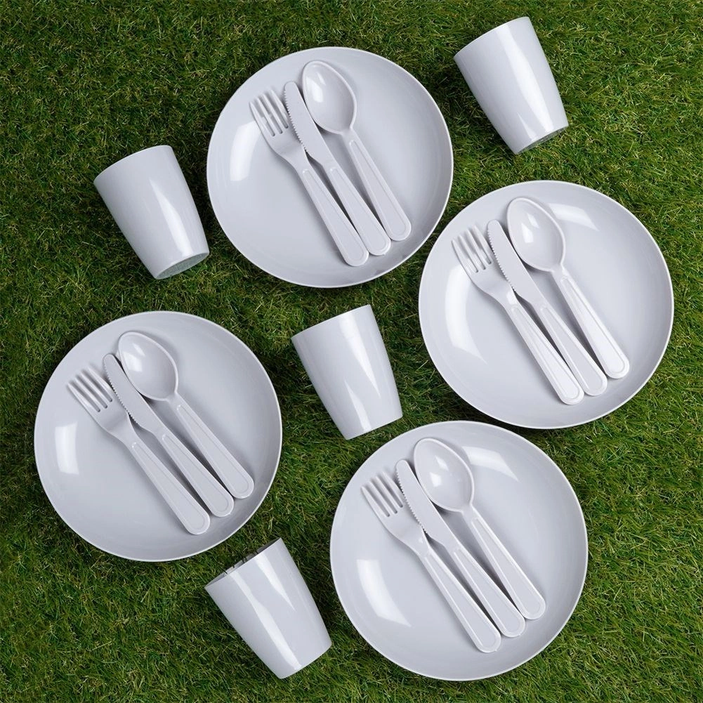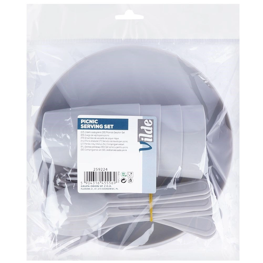 Élvezze a szabadtéri étkezést gondtalanul. Ez a praktikus készlet mindent tartalmaz, amire szüksége van italok, főételek és uzsonnák tálalásához. Kis súlyának és strapabíró anyagának köszönhetően tökéletes piknikhez, kempingezéshez és a kertbe. Felnőtteknek és gyerekeknek egyaránt alkalmas.