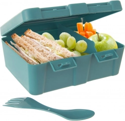 Könnyű és tartós ebéddoboz, amely megkönnyíti az ételek kényelmes szállítását és tárolását, megőrzi frissességüket és aromájukat, és csökkenti az egyszer használatos csomagolóanyagok iránti igényt. Az integrált 2 az 1-ben evőeszköz (hossza 14,5 cm) a fedél alatt kapott helyet, így mindig kéznél van. A doboz élelmiszerbiztonságos anyagokból készült, és alkalmas mindennapi használatra iskolába, munkába, kirándulásokra és utazáshoz.