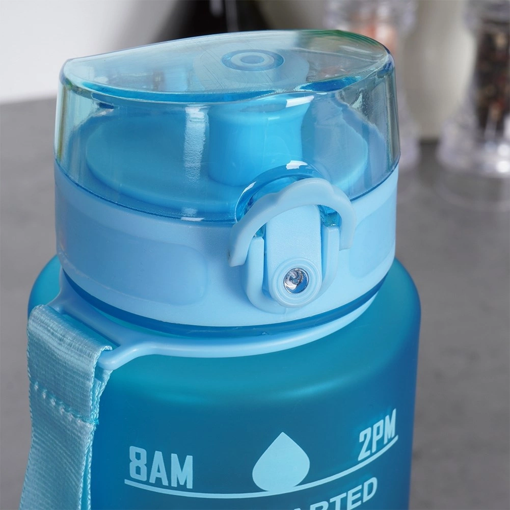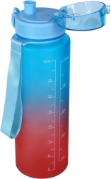 Praktikus, 1 literes sportkulacs kék–piros ombre dizájnnal, amely egész nap hidratáltan tart. Rendelkezik időjelölésekkel és motivációs feliratokkal, ml és fl oz skálával, szivárgásmentes, biztosítékkal ellátott felpattintható kupakkal, valamint egykezes használatú ivónyílással. Könnyű, strapabíró, és csuklópánttal a kényelmes hordozáshoz sportra, munkába és kiránduláshoz.