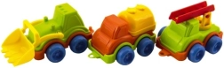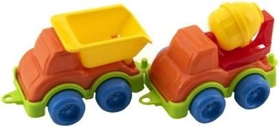 Billenőplatós teherautó, betonkeverő és más gépek ösztönzik az alkotó játékot. A gyerekek szállíthatnak, rakodhatnak és „építhetnek” saját fantáziájuk szerint.