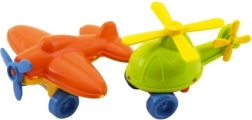 Színes szett műanyag mini autókból, építőgépekből és repülőkből, 10–12 cm-es méretben, szabadon futó meghajtással. A praktikus, 42 darabos csomagban vegyes típusok találhatók a végtelen szórakozáshoz és történetalkotáshoz. Strapabíró műanyag kivitel, amely fejleszti a finommotorikát és a képzelőerőt. 3 éves kortól ajánlott.