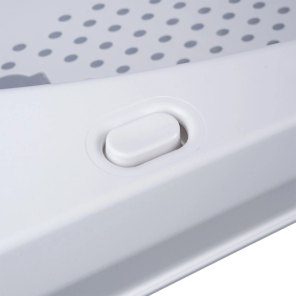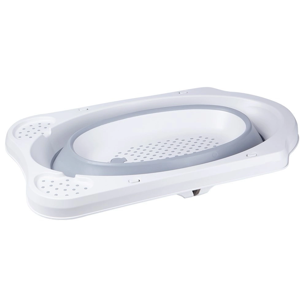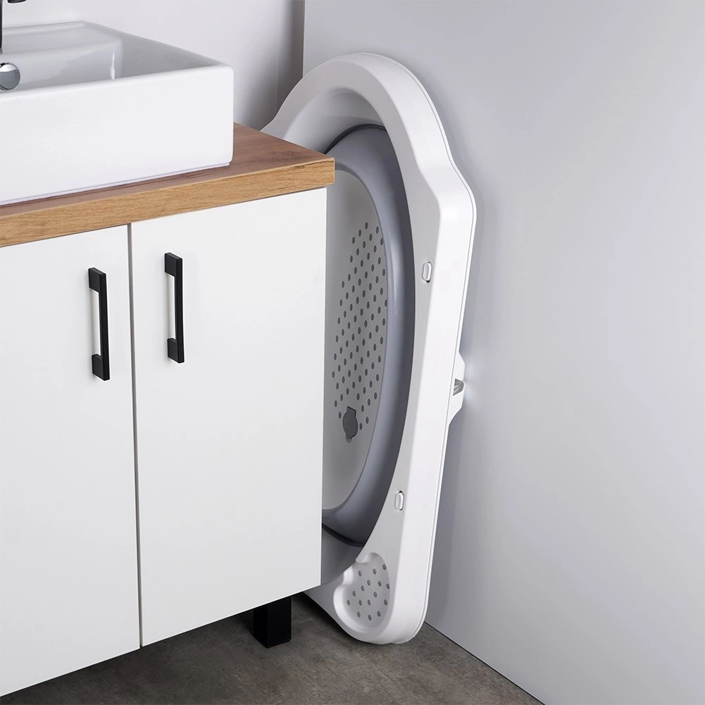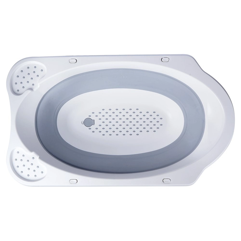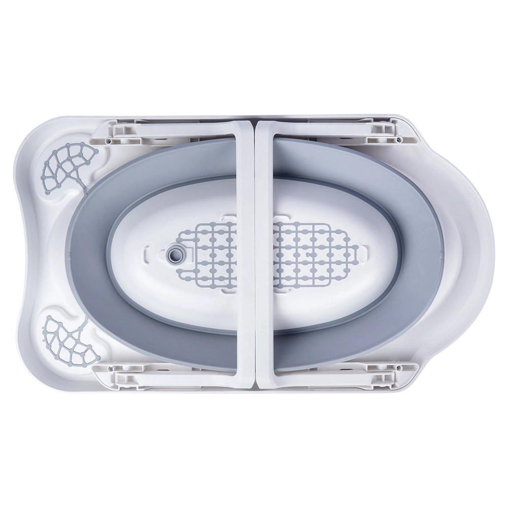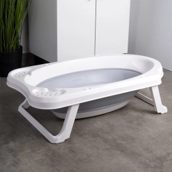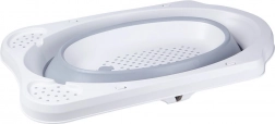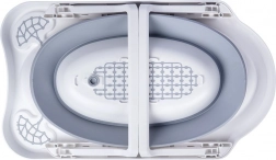 Praktikus, összecsukható gyerek kád 33 literes űrtartalommal, amely helytakarékos, stabil és biztonságos a zárral ellátott kihajtható lábaknak és az csúszásgátló talpaknak köszönhetően. A leeresztő dugó megkönnyíti a víz kiengedését, a laposra csukható kialakítás pedig a tárolást és a hordozást.