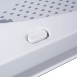 A fürdetés biztonságát a véletlen összecsukódás ellen biztosított kihajtható lábak és a csúszásgátló felületek adják, amelyek sima aljzaton is stabilitást nyújtanak. A leeresztő dugó gyors és kényelmes vízleeresztést tesz lehetővé közvetlenül a kádba vagy a mosdóba.