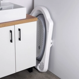 Ez az összecsukható kád tartós termoplasztikus gumiból és minőségi műanyagból készül, ezért masszív, stabil és hosszú távon megbízható. Az okos mechanizmusnak köszönhetően pillanatok alatt kinyitható és laposra csukható, majd keskeny résben is elhelyezhető a fürdőszobában.
