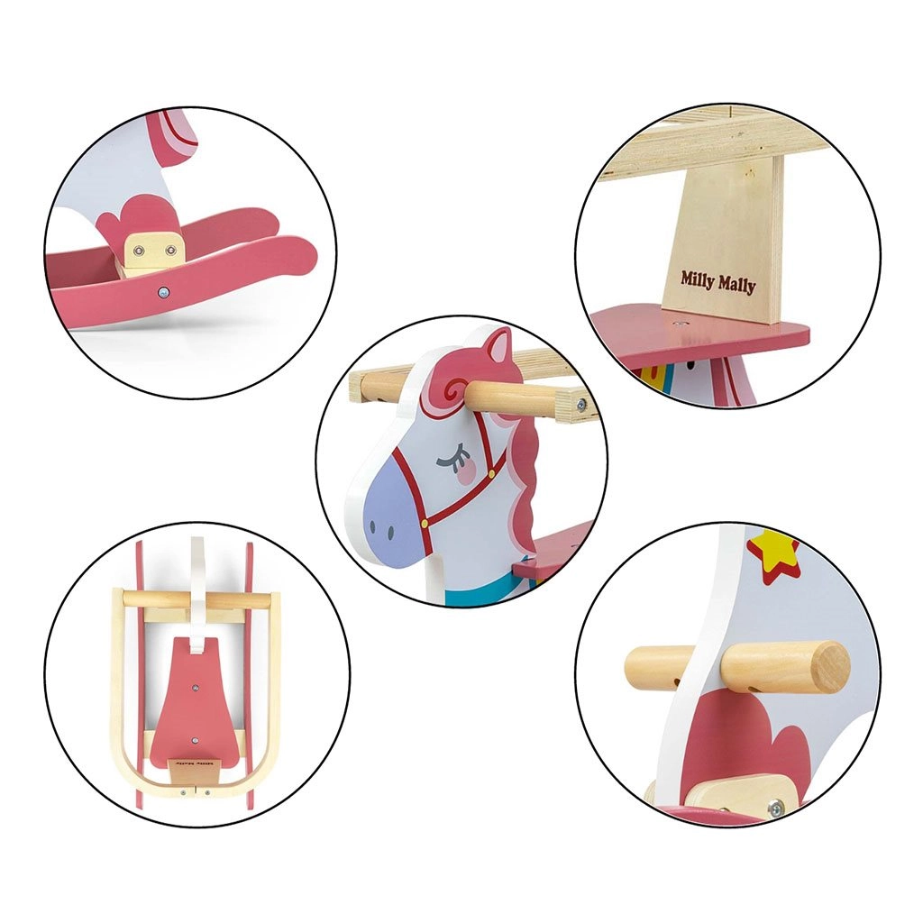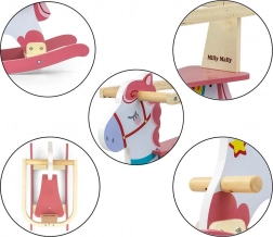A cuki MILLY MALLY Lucky fa hintaló rózsaszín színben biztonságos szórakozást nyújt a 12–36 hónapos gyermekeknek. Rendelkezik eltávolítható biztonsági korlátokkal, biztos fogást adó kapaszkodókkal, lábtartókkal és stabil, profilozott talpfákkal a kényelmes, kiegyensúlyozott hintázáshoz. Minőségi fából készült, és nem mérgező, környezetbarát festékkel kezelt.