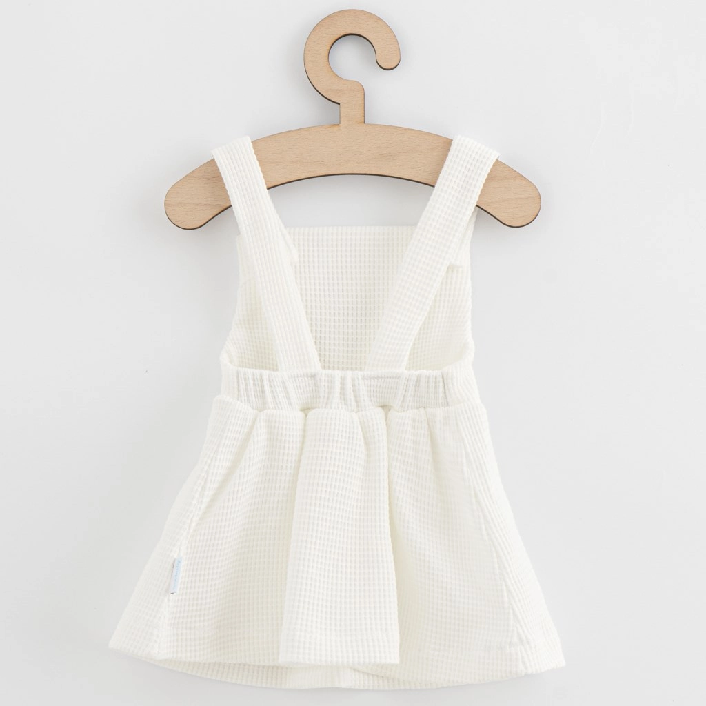 Visszafogott fehér színe és a anyag plasztikus struktúrája elegáns megjelenést kölcsönöz, amelyet könnyen összehangolhat bodyval, harisnyával vagy kardigánnal. A praktikus gombok megkönnyítik az öltöztetést és igény szerint állíthatóvá teszik a pántokat.
