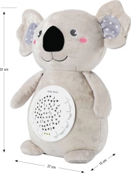 Aranyos plüss koala alakú alvótárs levehető projektorral, amely a gyerekszobát csillagos égbolttá varázsolja. 10 altatódalt, 5 fehérzaj-hangot, 7 színes világítási módot, 30/60/90 perces időzítőt és 5 hangerőszintet kínál a nyugodt elalváshoz már az első napoktól (0+).