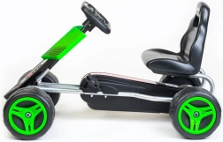 Fedezd fel a mozgás örömét a Baby Mix Speedy zöld gyermek pedálos gokarttal! A stabil felépítésnek, a nagy kerekeknek és a lánchajtásnak köszönhetően a vezetés egyenletes és biztonságos. A gokart állítható ülést, előre/hátra hajtást és csapágyas, nagy műanyag kerekeket kínál, így különböző felületeken is kényelmes. Remek választás 3–8 éves gyermekeknek.