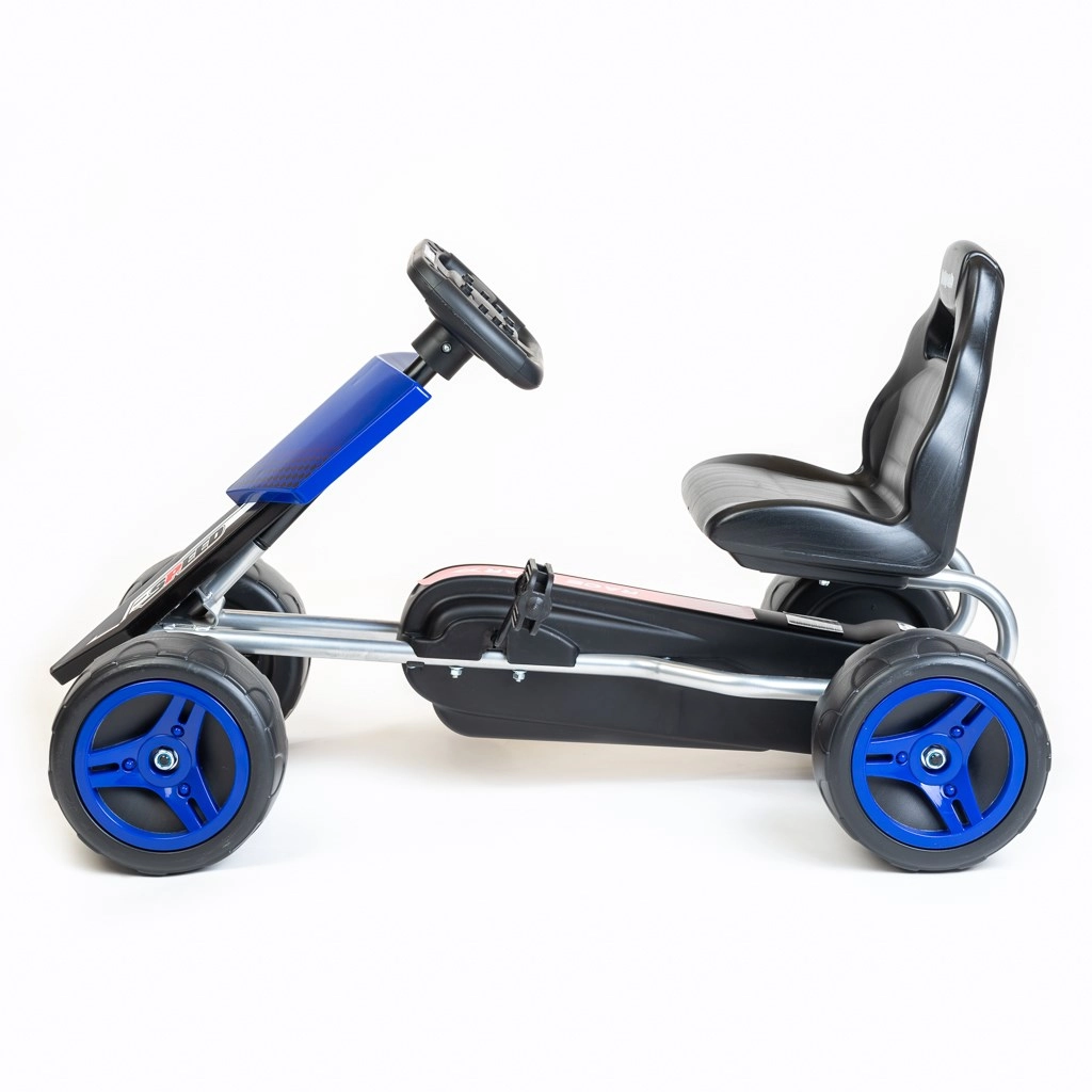 A praktikus lánchajtás előre/hátra funkcióval megkönnyíti a kezelést, míg a állítható ülés (2 pozíció) a gyermekkel együtt „nő”. A gokart megfelel az európai biztonsági szabványoknak, sportkormánnyal, műanyag burkolatokkal és védőelemekkel rendelkezik a nagyobb biztonság és tartósság érdekében.