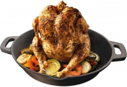 A masszív öntöttvas kivitel kiválóan vezeti és sokáig tartja a hőt, így az ételek egyenletesen sülnek át és tovább maradnak melegek.