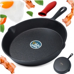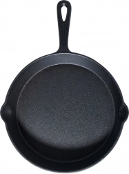 Ez a teljes egészében öntöttvas, fekete serpenyő rendkívül tartós és hosszú élettartamú. Az öntöttvas kiválóan eloszlatja és megtartja a hőt, így tökéletesen átsül a hús, a zöldség és a burgonya, az étel pedig tovább marad meleg. A két oldalsó kiöntőcsőr megkönnyíti a szaftok és mártások tiszta leöntését.