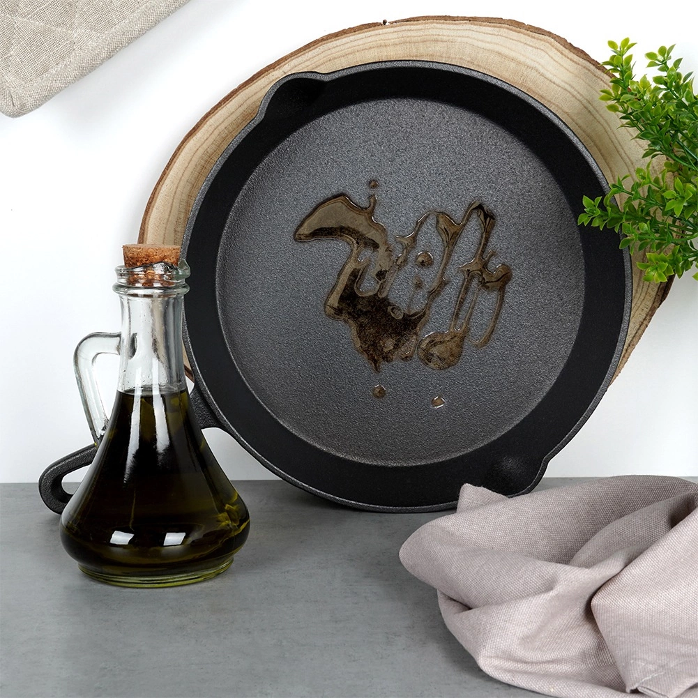 Ápolási tipp: Minden használat után mossa el, törölje teljesen szárazra, majd enyhén olajozza be. A rendszeres olajozás védi az öntöttvasat a korróziótól és biztosítja a hosszú élettartamot. A serpenyőnek nincs tapadásmentes bevonata.
