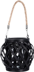Ez a dekoratív lámpás természetes bambuszfából készül, feketére lakkozva, és ideális esti pihenéshez erkélyen, teraszon vagy a nappaliban. A nyitott fonott szerkezet látványos fényjátékot hoz létre, és kellemes, megnyugtató atmoszférát ad a helyiségnek.