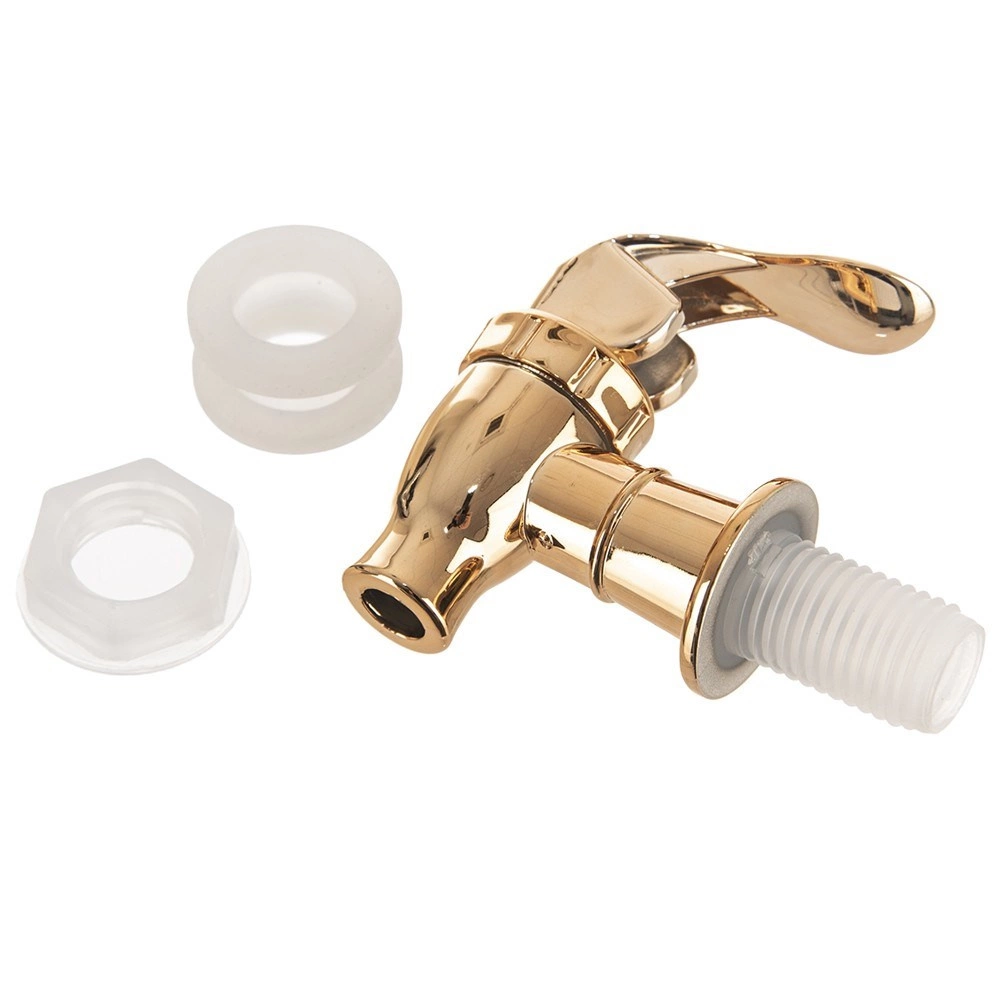 Az elegáns arany csap ideális megoldás, ha az eredeti kifolyó az italdispenszeren megsérül. Néhány perc alatt könnyedén kicserélhető, így nem kell új ballon/adagoló vásárlásán gondolkodnia. A csomag mindent tartalmaz a szoros és biztonságos rögzítéshez.