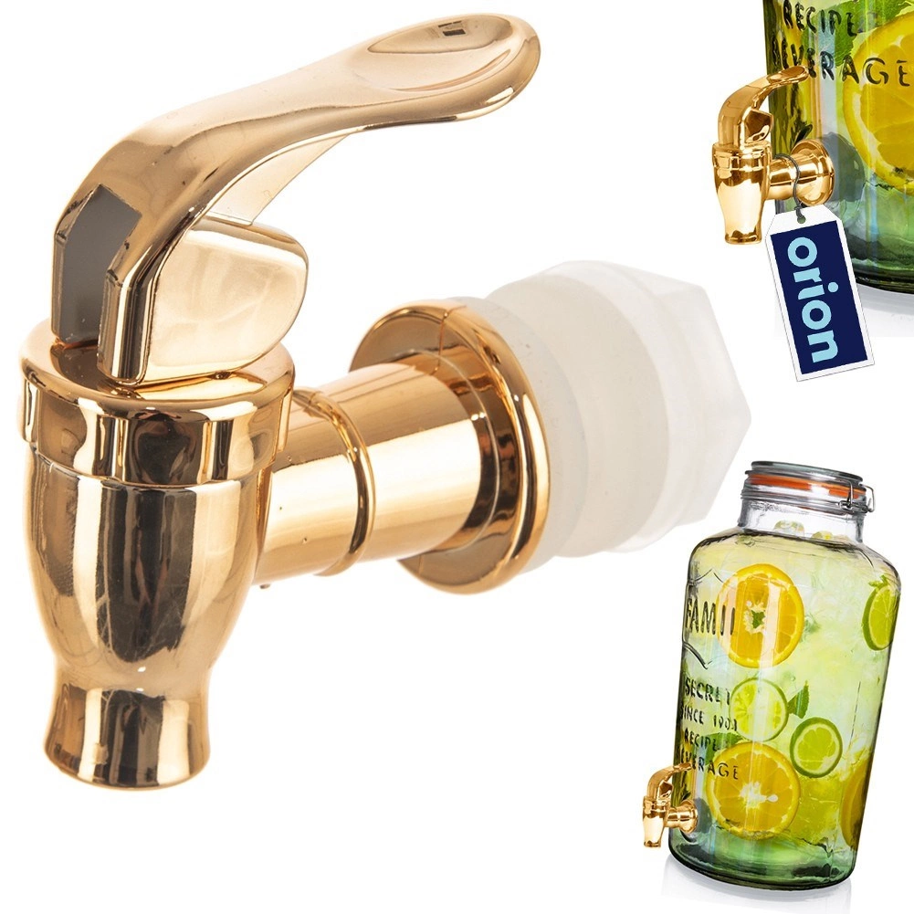 Az univerzális méret és menet biztosítja a kompatibilitást a legtöbb üveg limonádés, vizes vagy házi jegesteás edénnyel. A fémes fényű arany kivitel prémium megjelenést ad a terítésnek, miközben kényelmes karos vezérlést nyújt az egyenletes italadagoláshoz.