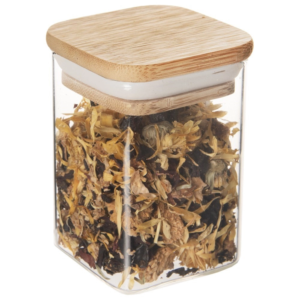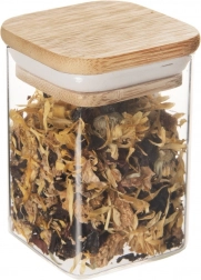 Ez a dizájnos tárolóedény a boroszilikát üveget természetes bambusz fedéllel és szilikon tömítéssel ötvözi a megbízható, szoros záródásért. Az átlátszó üveg azonnali rálátást biztosít a tartalomra, a stílusos fedél természetes akcentust ad a polcnak és a munkalapnak. A kompakt méreteknek köszönhetően helytakarékos és könnyen összeállítható szettekbe.
