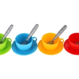 - Teáskanna, 4 csésze, 4 csészealj, 4 kanál (színes összeállítás)
