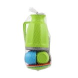 A készlet könnyű hálóban kerül csomagolásra az egyszerű hordozás, tárolás és a játék utáni rend megtartása érdekében.