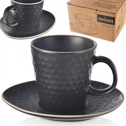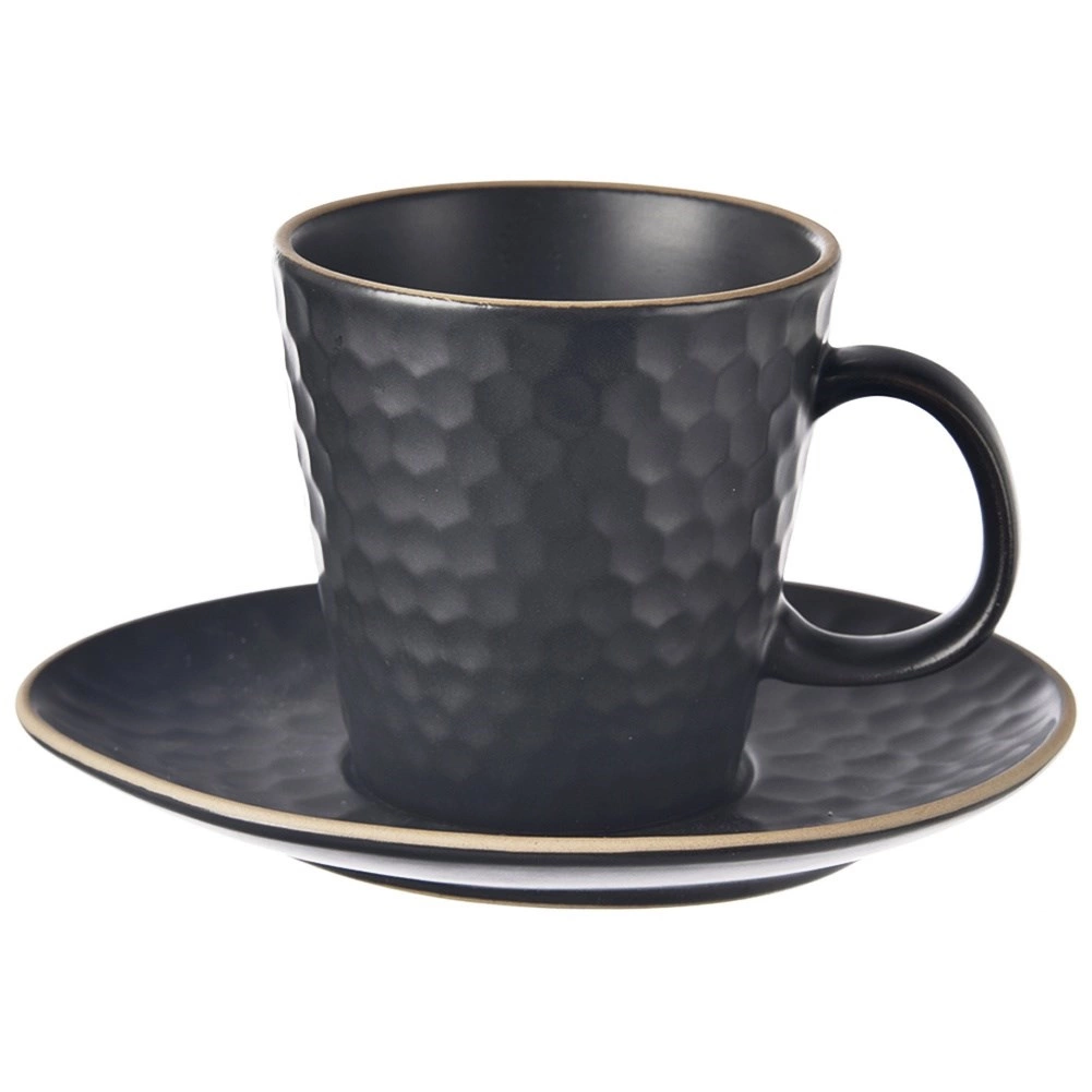 Élvezze kedvenc kávéját vagy teáját az elegáns TEA TIME csészében. A matt fekete kőedény finoman kontrasztos szegéllyel és a méhsejt mintájú, strukturált felülettel modern, időtálló megjelenést ad a csészének és a csészealjnak. A kényelmes fülnek köszönhetően a csésze jól fogható, a csészealj pedig felfogja az esetleges cseppeket.