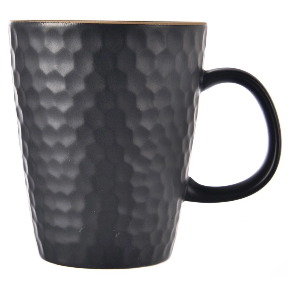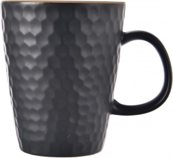 Fedezze fel a praktikus és időtálló bögrét a TEA TIME kollekcióból, amely remekül kiegészíti otthoni készletét. A fekete matt máz és a domború méhsejt minta modern megjelenést ad, egyúttal javítja a fogást. A 420 ml űrtartalomnak köszönhetően teljes mértékben élvezheti kedvenc kávéját, teáját vagy forró kakaóját.