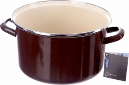 Ez az elegáns, Brown kollekcióba tartozó zománcozott lábas ideális a mindennapi főzéshez, pároláshoz és melegítéshez. A 6,5 literes kapacitás bőséges teret kínál levesekhez, szószokhoz és családi adagokhoz. A külső barna máz, a bézs belső és a rozsdamentes perem időtálló megjelenést kölcsönöz az edénynek, és növeli a kopásállóságot.