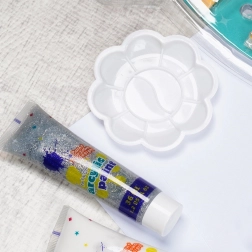 A műanyag paletta megkönnyíti a színek keverését és az effektek kipróbálását munka közben, akár vászonra, papírra vagy fára fest.