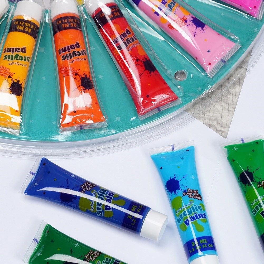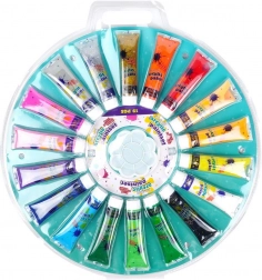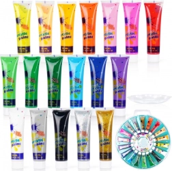 A csomagban 18 árnyalat található, köztük csillámos arany, csillámos ezüst, neon és gyöngyház tónus – mindez készen áll a mellékelt palettán történő keverésre. Az akrillal készült festékek kiválóan tapadnak különféle felületekre, és száradás után tartósak és színtartók.
