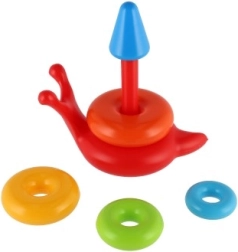 Számos színes, különböző méretű gyűrű fejleszti a gyerekek motorikus képességeit és koordinációját.