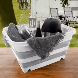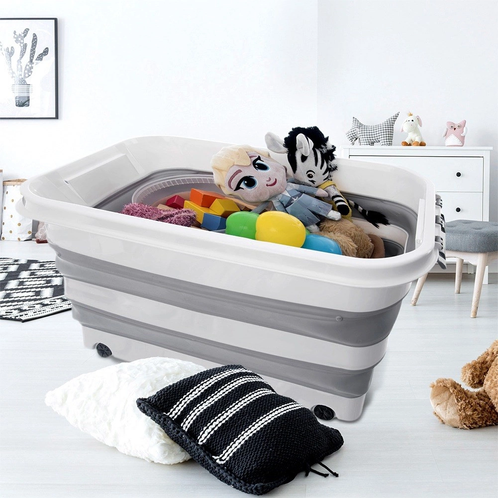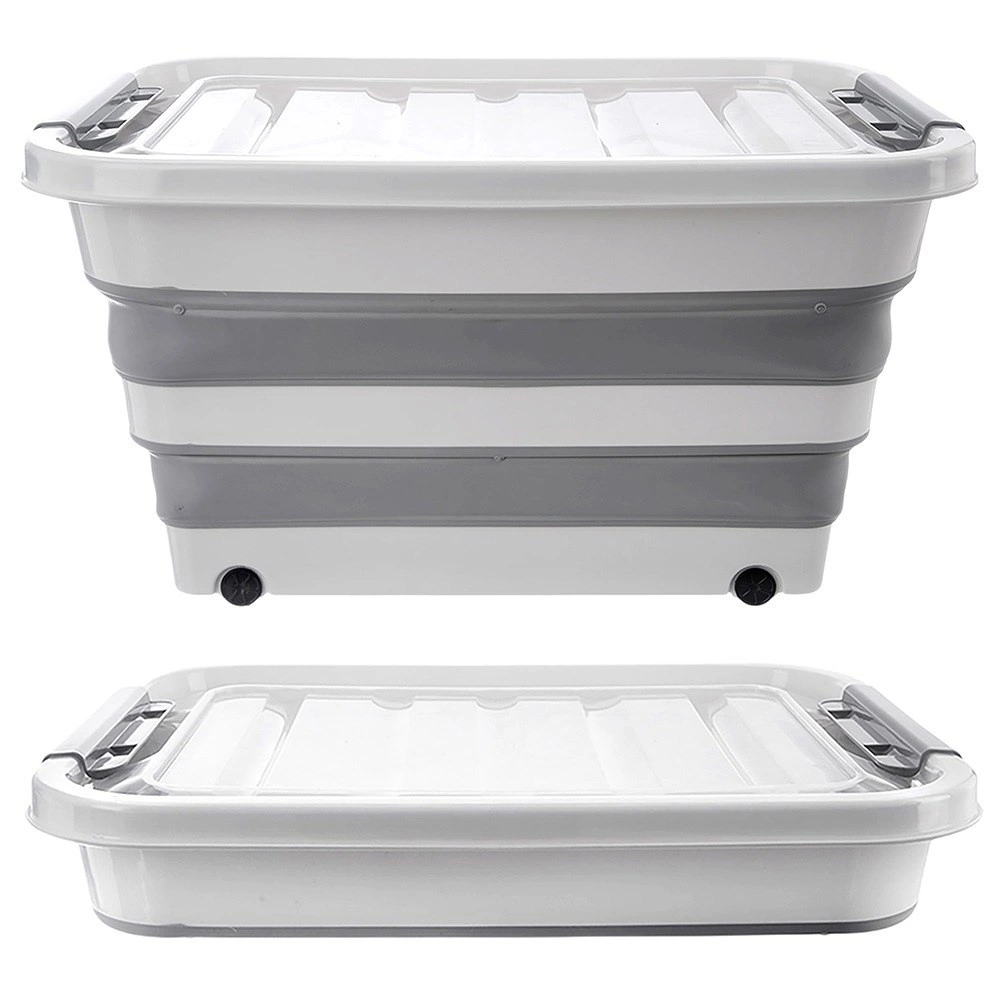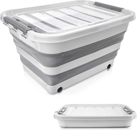 A doboz strapabíró TPR gumiból és minőségi műanyagból készült, így bírja a mindennapos használatot otthon, a műhelyben és a kertben is. Az összecsukható kialakítás révén kb. 9,5 cm magasságra hajtható, így helyet takarít meg, amikor épp nincs használatban. Ideális ágynemű, játékok, ruhák, textíliák, könyvek és egyéb háztartási holmik tárolására.