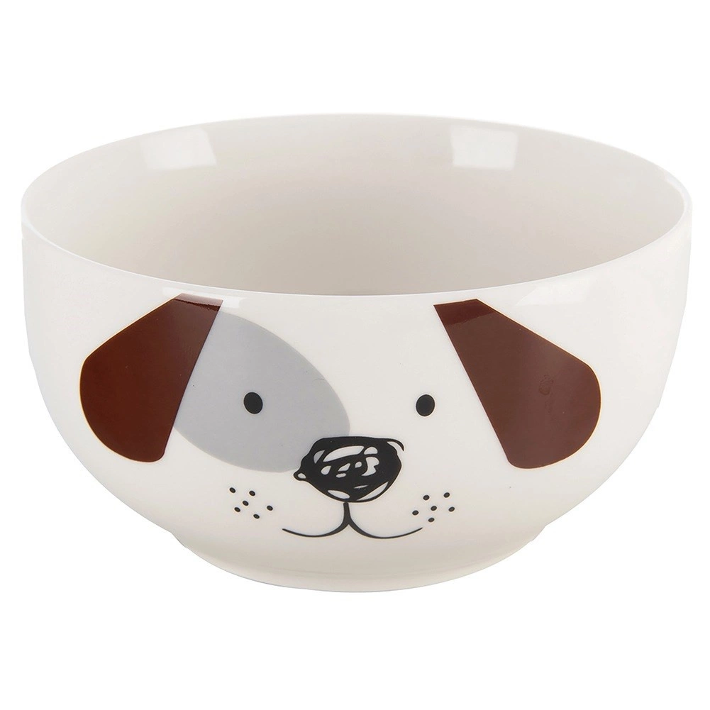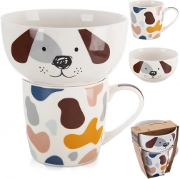A tál és a bögre egymásra rakható, és vidám kutyus mintát alkotnak. Szuper megoldás müzlihez és italokhoz, amit a gyerekek imádnak.