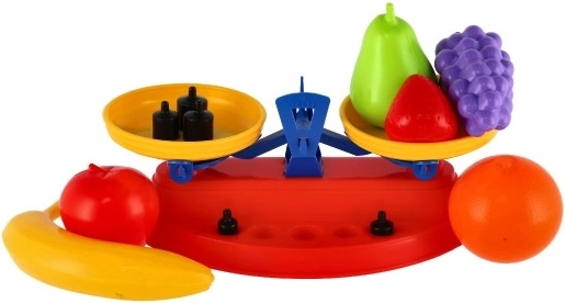 Szórakoztató gyerek szett, amely ötvözi a konyhai mérleget és a 7 darab színes műanyag gyümölcsöt, hogy a gyerekek játékon keresztül megismerjék a súlyt, az egyensúlyt és a számolást. Tartós kivitel és biztonságos, lekerekített formák támogatják a finommotorikát, a képzeletet, valamint a boltos- vagy konyhás szerepjátékot.