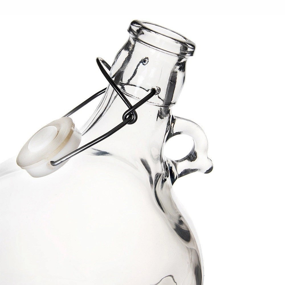 Nagy, 5 literes üveg demizson praktikus füllel és patentos, csattal zárható fedéllel szilikon tömítéssel, ideális házi borokhoz, likőrökhöz, kivonatokhoz és szirupokhoz. A masszív, átlátszó üveg kiemeli a tartalmat, míg a légmentes zárás hosszú távú tárolást biztosít levegőhozzáférés nélkül. Stílusos retró megjelenése és a könnyű hordozhatóság miatt remek választás otthonra és vendéglátásba is.