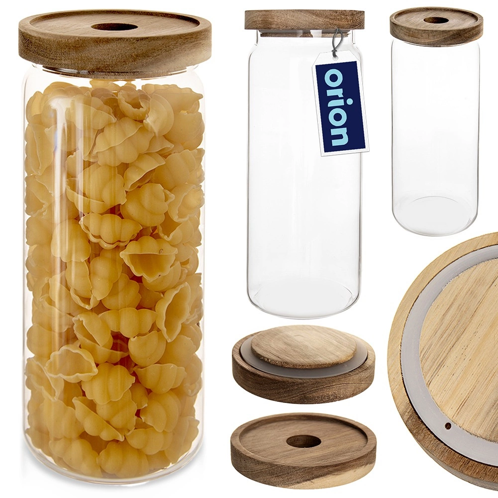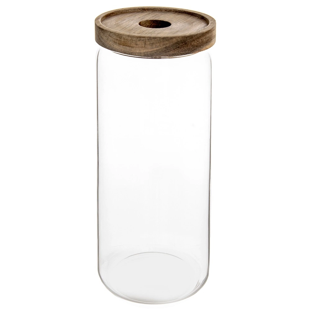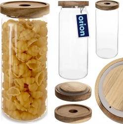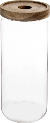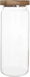 Praktikus 1,6 l űrtartalmú üveg tároló fa fedéllel és szilikon tömítéssel, amely hosszabb ideig frissen és illatosan tartja ételeit. A strapabíró boroszilikát üveg ideális a mindennapi használatra, az átlátszó falak azonnali tartalomellenőrzést tesznek lehetővé, az elegáns megjelenés pedig bármelyik konyhát feldobja. Tökéletes kávé, tészta, diófélék, müzli és más száraz alapanyagok tárolására, az üveg része mosogatógépben mosható.