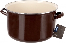 A retro stílusú zománcozott fazék tartós kivitelével, nagy űrtartalmával és univerzális konyhai felhasználásával tűnik ki. A barna külső, a krémszínű belső és a rozsdamentes perem elegáns megjelenést kölcsönöz az edénynek. A zománc egészségre ártalmatlan, allergiások számára is megfelelő.