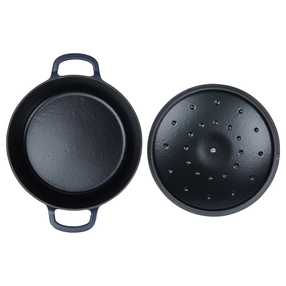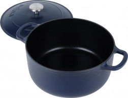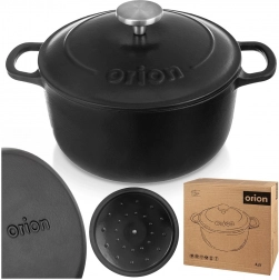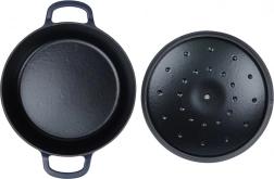 Univerzális öntöttvas lábas fedővel, 5,2 l űrtartalommal mindennapi főzéshez, pároláshoz és sütéshez. A egyenletes hőeloszlásnak, a hosszú hőtárolásnak és a 250 °C-ig tartó hőállóságnak köszönhetően levesekhez, pörköltekhez és sült ételekhez is ideális tűzhelyen, sütőben és grillen. A belső zománcozott felület megkönnyíti a főzést és a könnyű tisztítást, a masszív rozsdamentes acél gomb a fedélen és a széles oldalsó fogantyúk biztonságos kezelést biztosítanak.