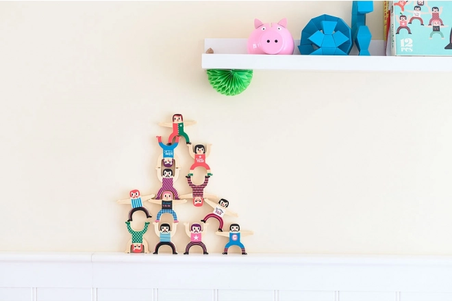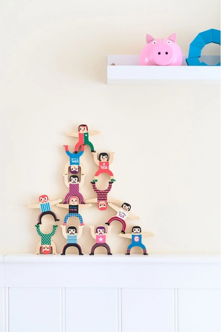 Építsd meg a saját akrobata tornyodat, és tedd próbára ügyességedet és fantáziádat. A színes fa figurák számos stabil és merész pozícióba rendezhetők, így ez a játék ideális választás a közös játékhoz és az egyensúly tanulásához.