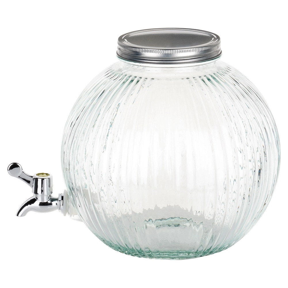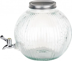 Stílusos, kerek italadagoló vastag üvegből, 5,5 l űrtartalommal, megkönnyíti a hideg italok felszolgálását a családnak és a vendégeknek. Az integrált csapnak köszönhetően kényelmesen, kilöttyenés nélkül tölthet, míg a csavaros fém fedél megvédi a tartalmat a rovaroktól és a szennyeződésektől.