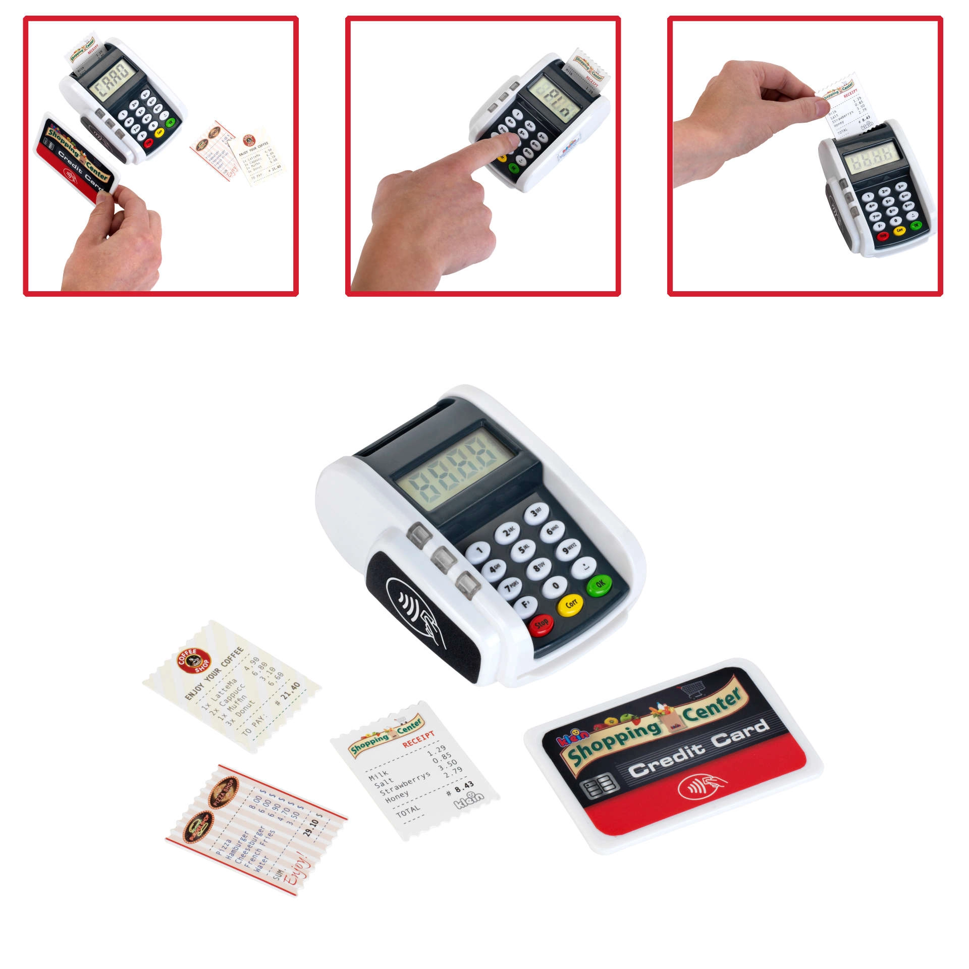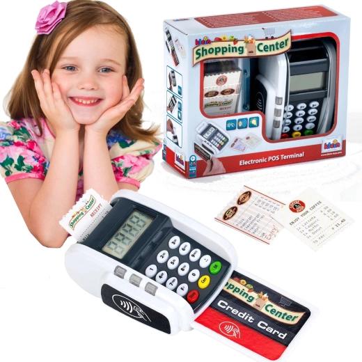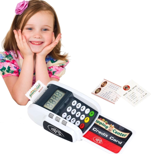 Ez a kompakt terminál hűen utánozza a valódi eszközt: a gyerekek nyomkodhatják a számbillentyűzetet, hozzáérinthetik a bankkártyát, és „nyugtákat” nyomtathatnak a valósághű pénztáros játékhoz. A fény- és hanghatások minden tranzakciónak megadják a kellő realisztikus hangulatot, és támogatják a szociális készségek fejlődését.