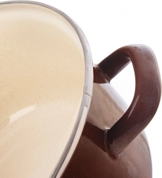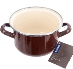 A BROWN sorozat lábasa időtlen megjelenést ötvöz a mindennapi praktikummal. A barna, zománcozott acél ezüstös rozsdamentes peremmel és krémszínű belsővel modern és rusztikus konyhákba egyaránt illik. Az 1,4 l űrtartalom, 16 cm átmérő és 10 cm magasság révén tökéletes levesekhez, mártásokhoz, kásákhoz vagy kisebb köretadagokhoz.