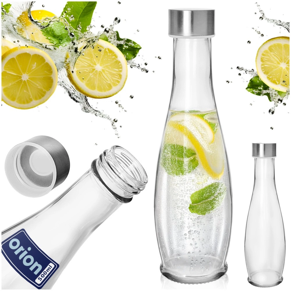Stílusos, 480 ml-es üvegpalack a mindennapi folyadékbevitelhez és italok elegáns felszolgálásához családi ünnepeken. Az átlátszó üveg lehetővé teszi a szint ellenőrzését, valamint a gyümölccsel és fűszernövényekkel ízesített italok mutatós tálalását. A fém kupak szilikon tömítéssel megbízható zárást biztosít szivárgás nélkül, és tovább frissen tartja az italt.