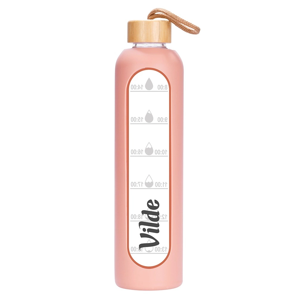 Tartsd stílusosan a hidratáltságod! Ez a lazacrózsaszín palack elegáns dizájnt és praktikusságot ötvöz: tartós bórszilikát üveg, biztonságos bambusz kupak textil pánttal és szilikon burkolat a biztos fogásért és a törés elleni védelemért. Az időjelöléseknek köszönhetően könnyen nyomon követheted a napi folyadékbeviteled.