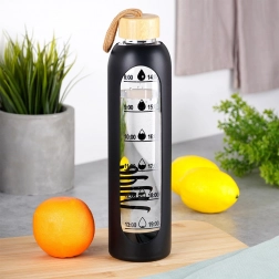 Üveg vizespalack bambusz tetővel és szilikon borítással, 1 l, fekete