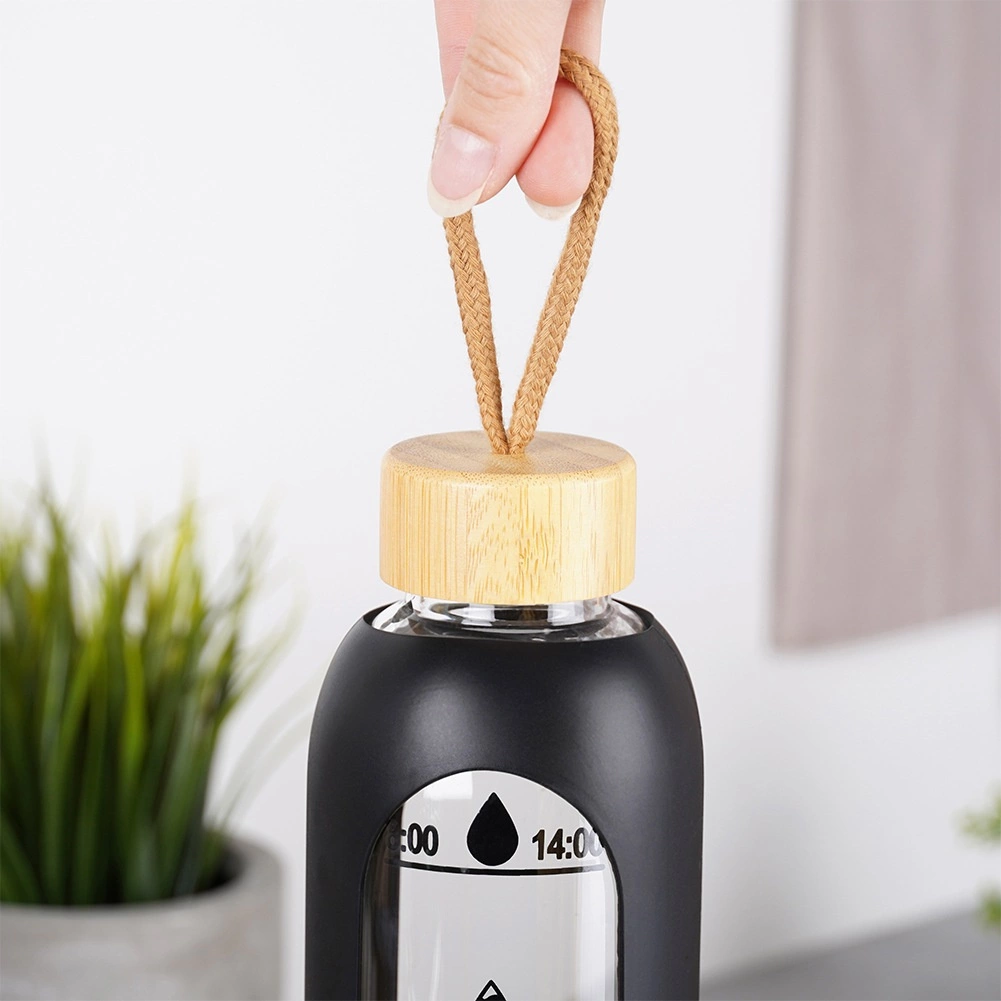 A fekete szilikon borítás védi az üveget és biztos fogást nyújt, a természetes bambusz tető hordpánttal megkönnyíti a szállítást.