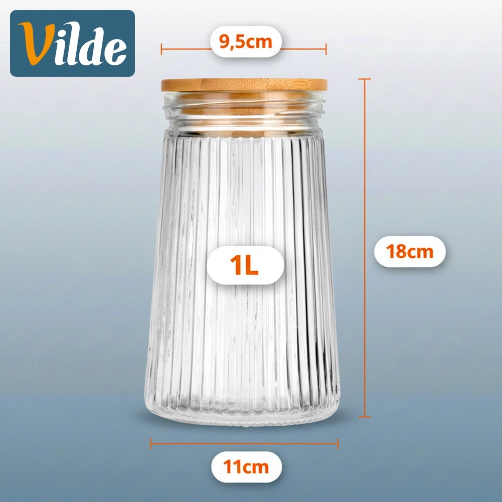 Praktikus és designos élelmiszertároló a mindennapi konyhai használatra. A boroszilikát üveg jól tűri a hőingadozást, a bordázott felület pedig modern megjelenést és jobb fogást ad. A bambusz fedél szilikon tömítéssel megbízhatóan lezárja az edényt, így tovább megőrzi az alapanyagok illatát és roppanósságát.