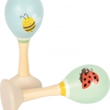 Szerezzen örömet a kicsiknek az első zenélés élményével. A Small Foot fa maracasok méhecske és katicabogár motívummal kényelmesen kézben tarthatók, kellemesen csörögnek, és sima felületüknek köszönhetően a legkisebbek számára is biztonságosak. A pasztell színek és a kedves dizájn természetes módon hívnak játékra és a ritmus felfedezésére.